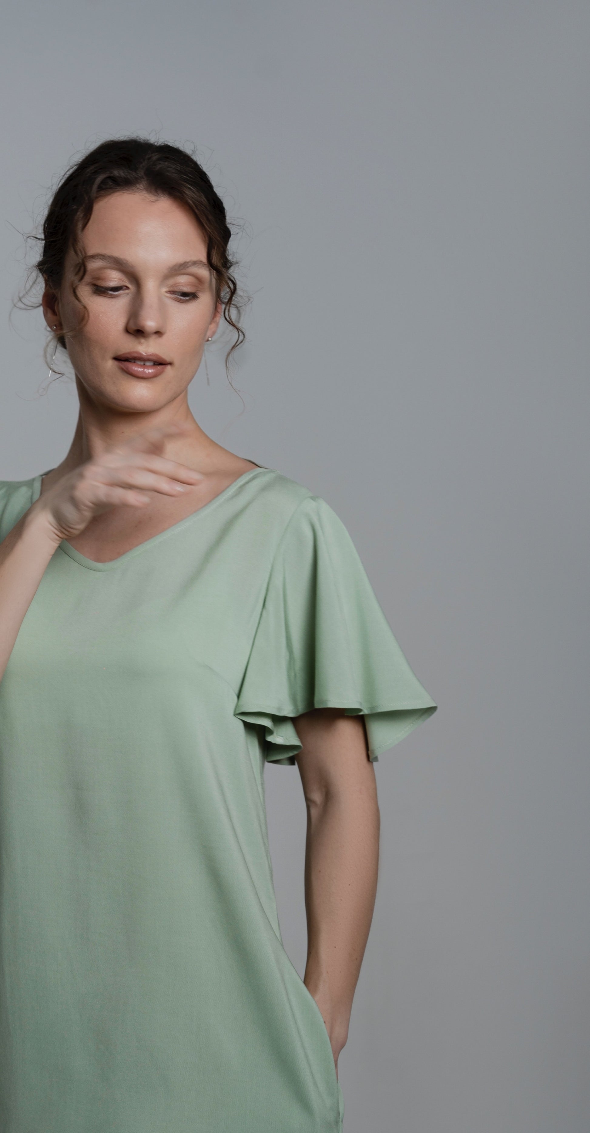 With its relaxed fit, flutter sleeves, and feminine open-back tie detail, Clara brings easy elegance to any occasion — from casual mornings to summer dinners. Wear it with sneakers, sandals, or heels — it adapts to your lifestyle. And yes, it has hidden side pockets you’ll fall in love with.