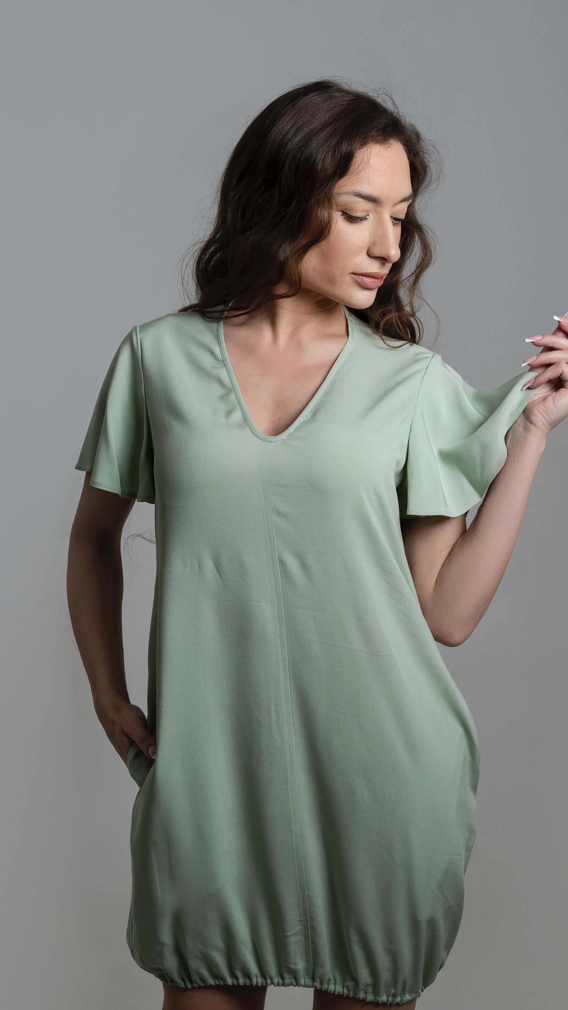 LILLY Bamboo Dress – Fresh Mint | Flutter Sleeve, V-neckline, Pockets